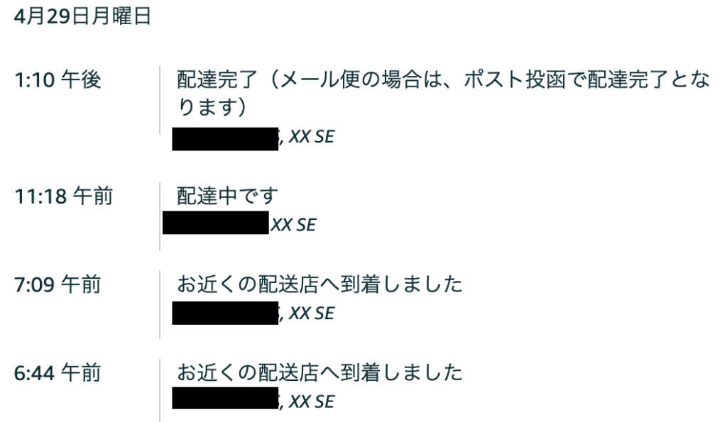 Amazonジャパン公式サイトによると、日本からスウェーデンの配送日数は最短2日と記載がありました。果たして実際にどれくらいの日数で届くのか、時系列で紹介していきます。