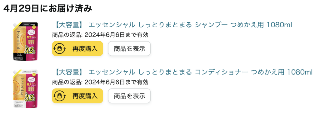 購入したのはシャンプーや化粧品の合計4点です。スウェーデンにも良いシャンプー等があると思いますが、慣れたものを使いたいのでわざわざ日本から買うことにしました笑