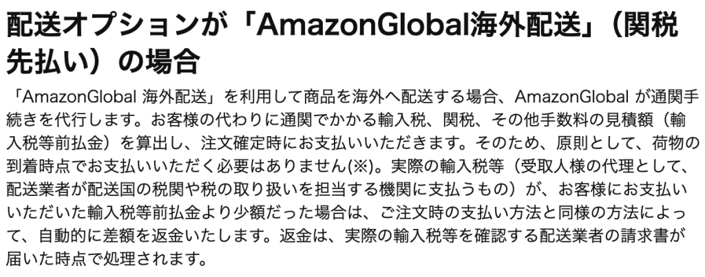 Amazonジャパンで商品を購入してスウェーデンに届けるには関税を払う必要がありますが、配送オプションがAmazonGlobal海外配送になっていれば、関税が先払いになっているので購入手続きの際に支払いが完了します。